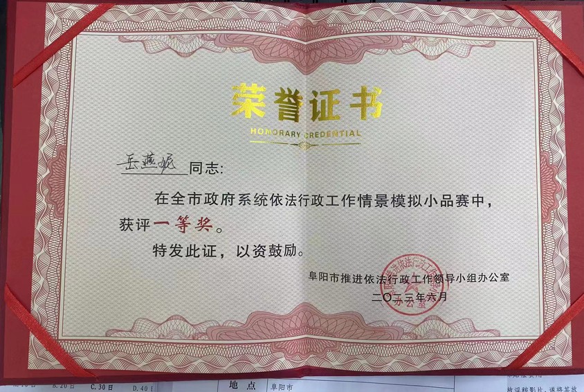 阜陽市司法局小品在工作情景模擬小品(決賽)環節獲得團體第一名 |